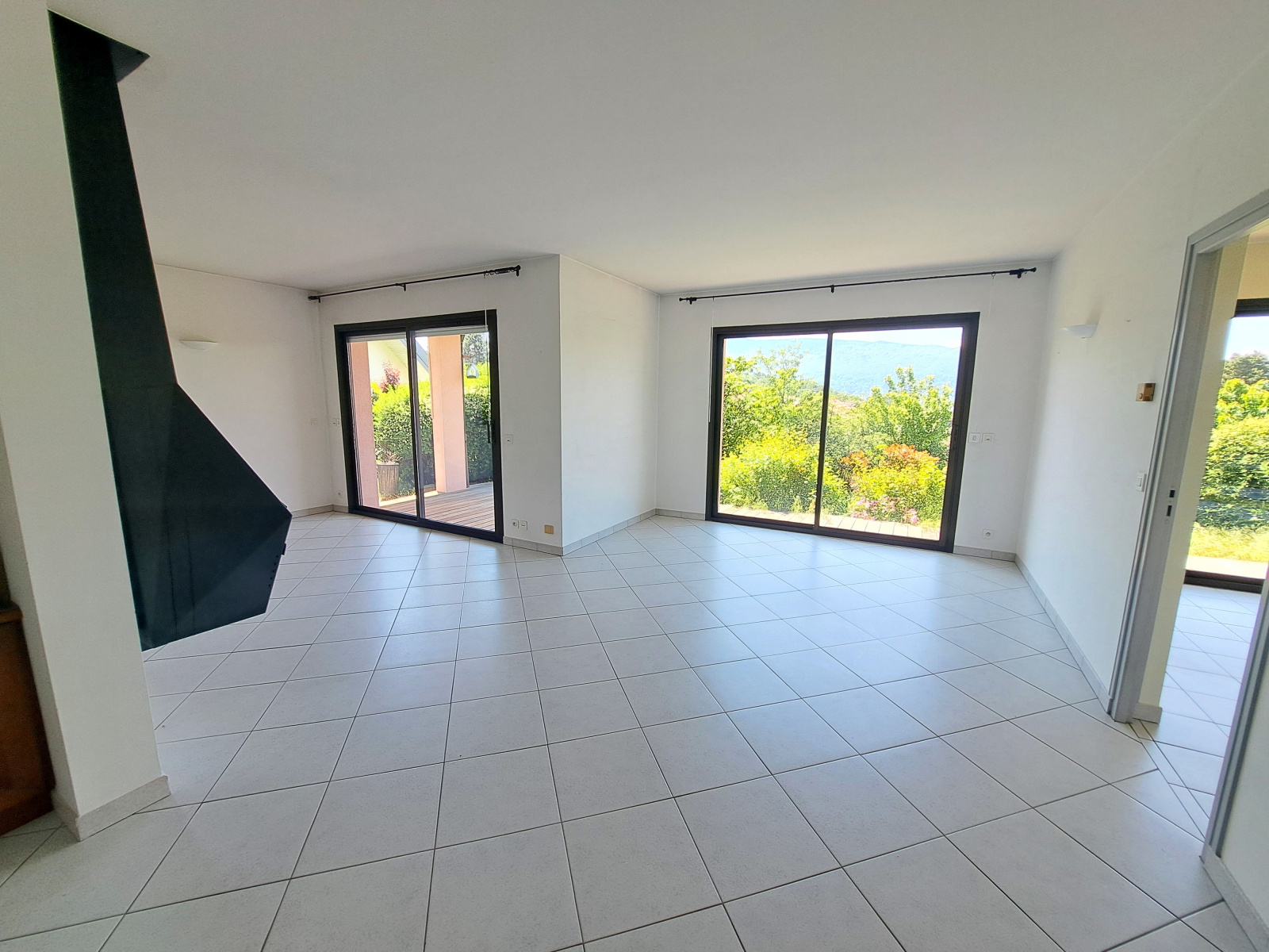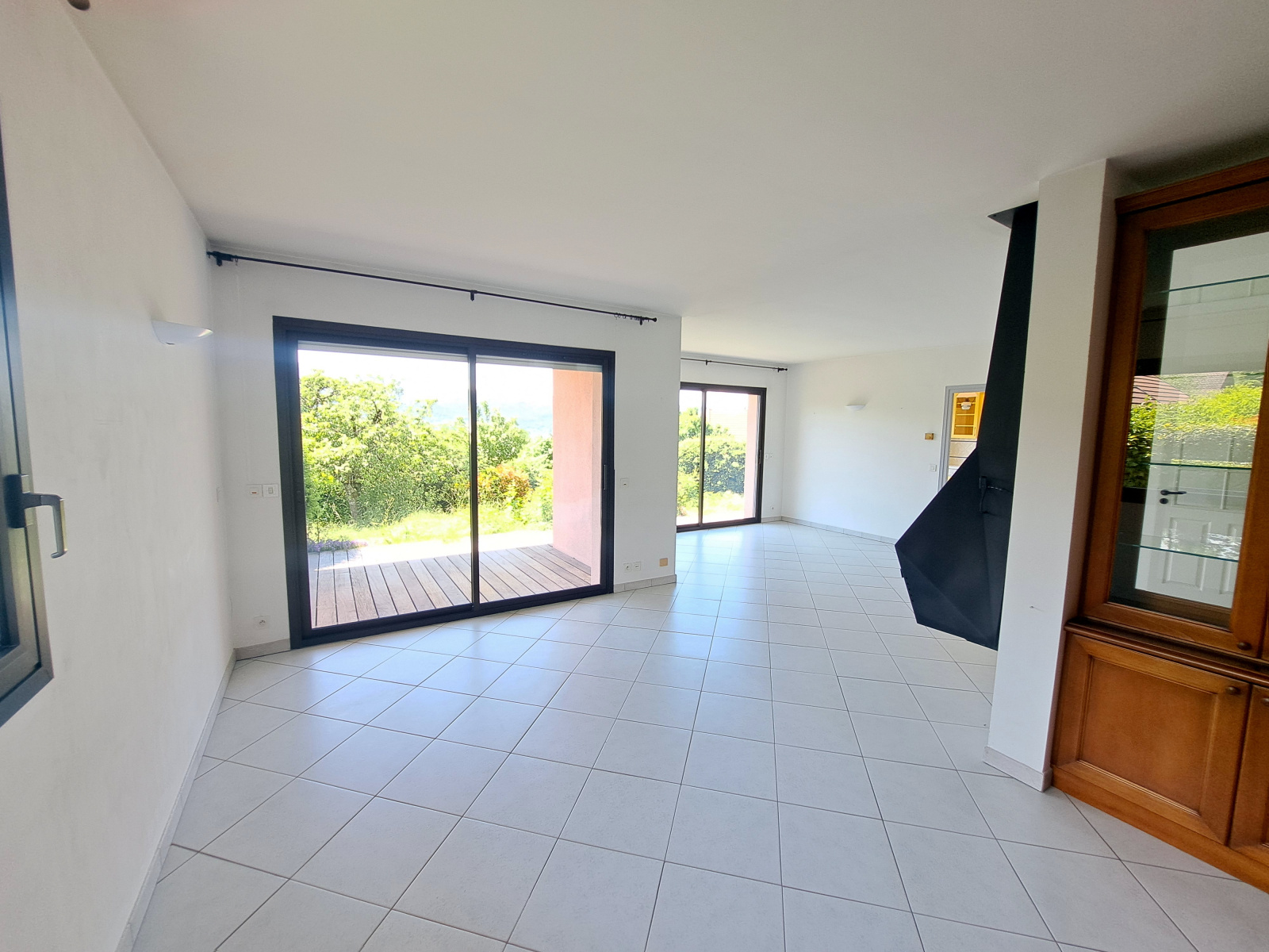 Très belle vue dégagée depuis la terrasse du rez sur les montagnes et un aperçu lac.