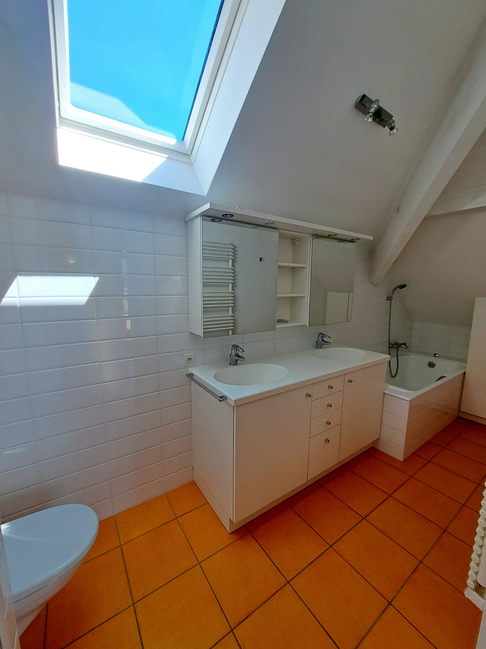A l'étage, 3 belles chambres de 15m² chacune dont une avec sa salle de bain privative et sa terrasse panoramique offrant un beau point de vue sur le lac et les montagnes.
