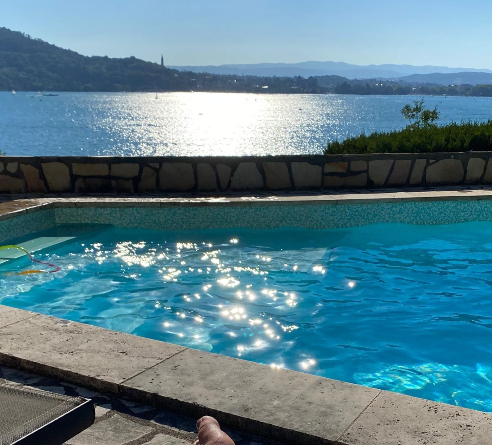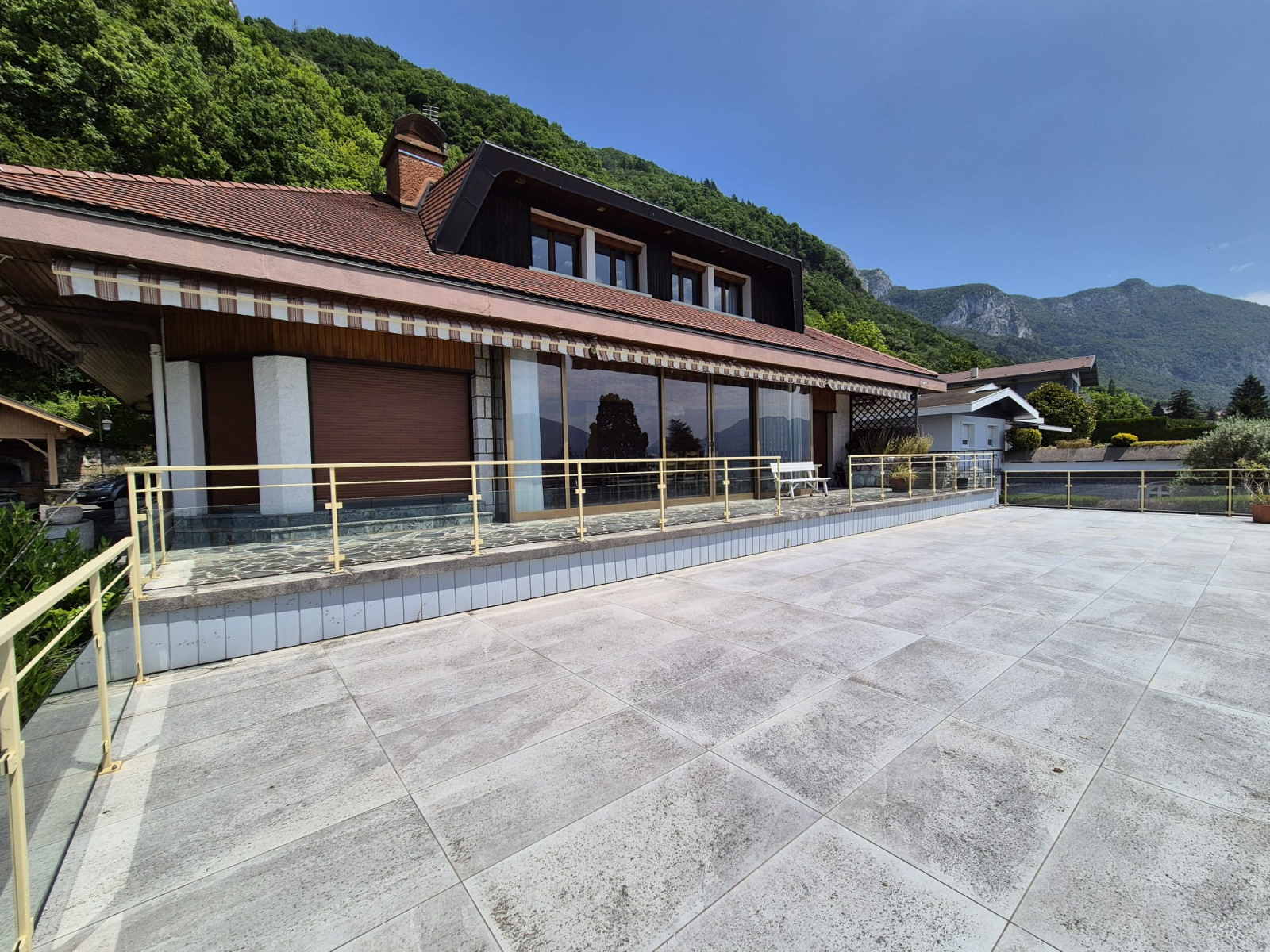 Cette propriété cossue de 600M² utiles avec ses annexes se loge dans un parc arboré de 6300M² environ (terrain non constructible). Large vue imprenable sur la baie d'Annecy et le lac, une des plus spectaculaires du secteur. L'intérieur et les vastes dépendances semi-enterrées permettent la réalisation d'aménagements de rêve: SPA, salle de sport, de cinéma..... une construction de qualité dans un environnement extraordinaire.