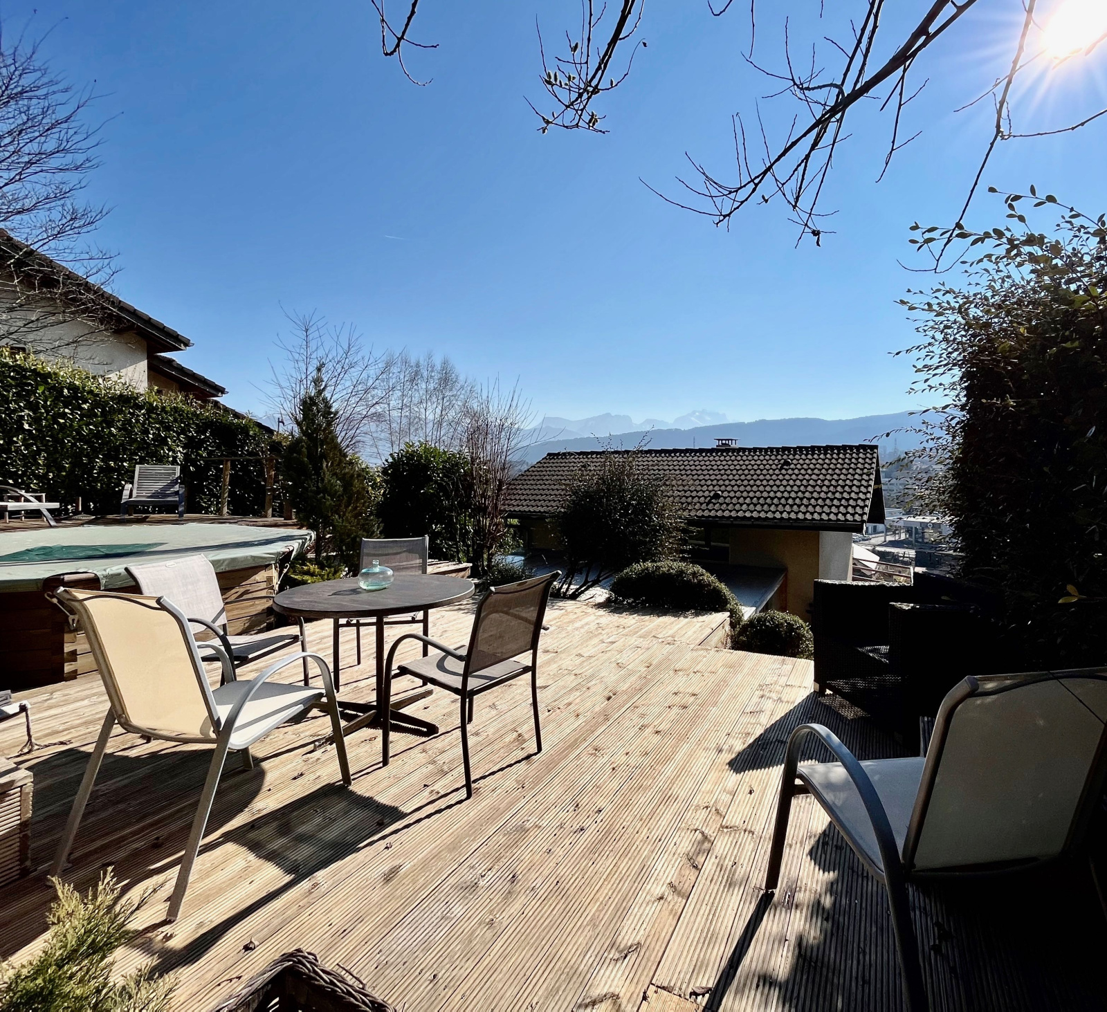 Sa vue surplombant la vallée avec une vue dégagée sur le Semnoz.
